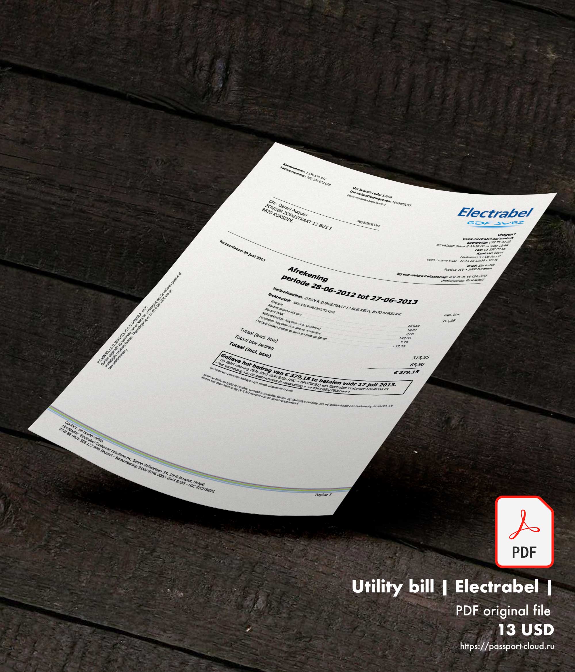 Fake Belgium Electrabel Bill Template Editable. Fully editable psd template. Best quality on the market. Easy to customize, Layer based.