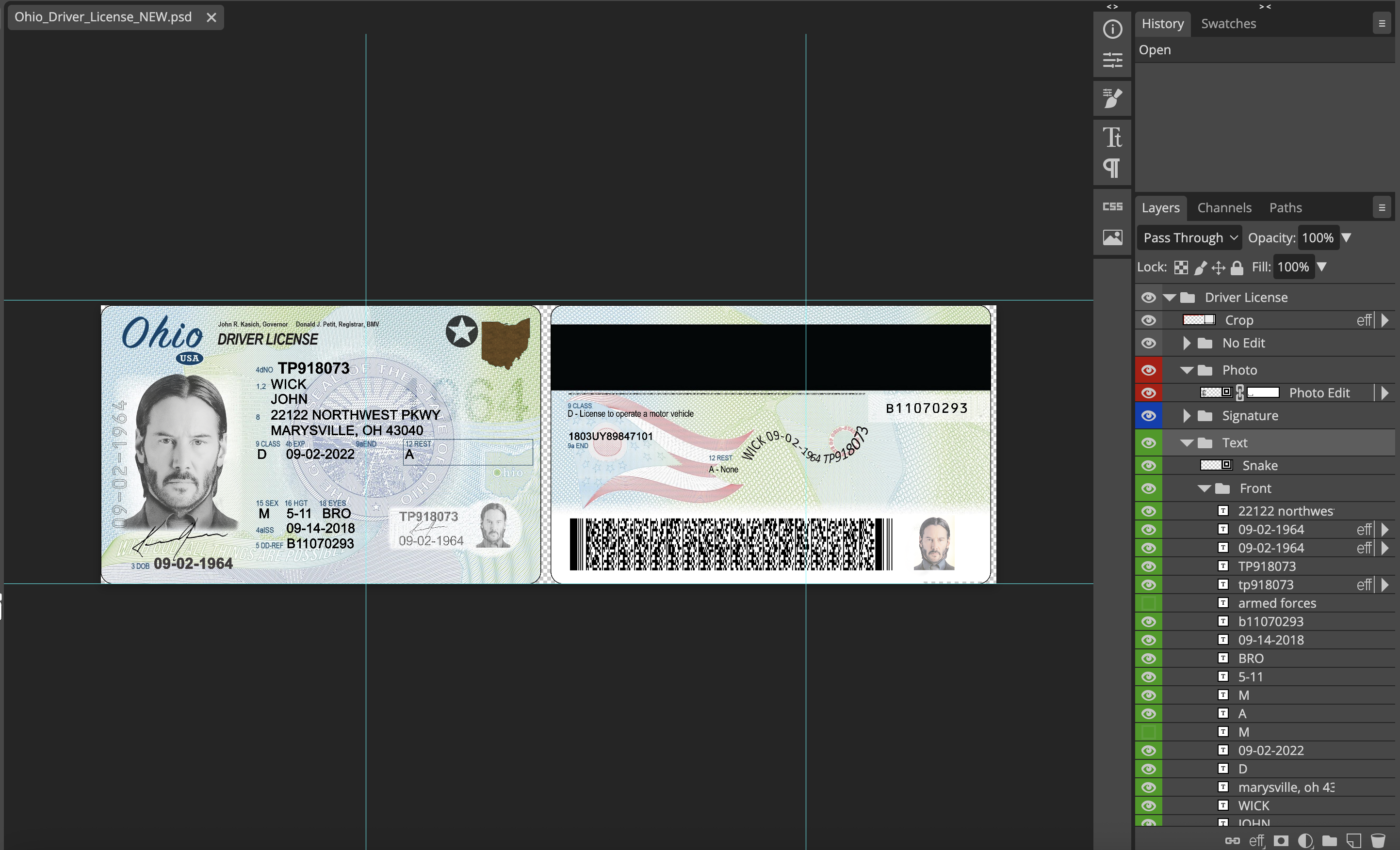 Ohio Driver License Template PSD – Editable Mockup for Professional Use