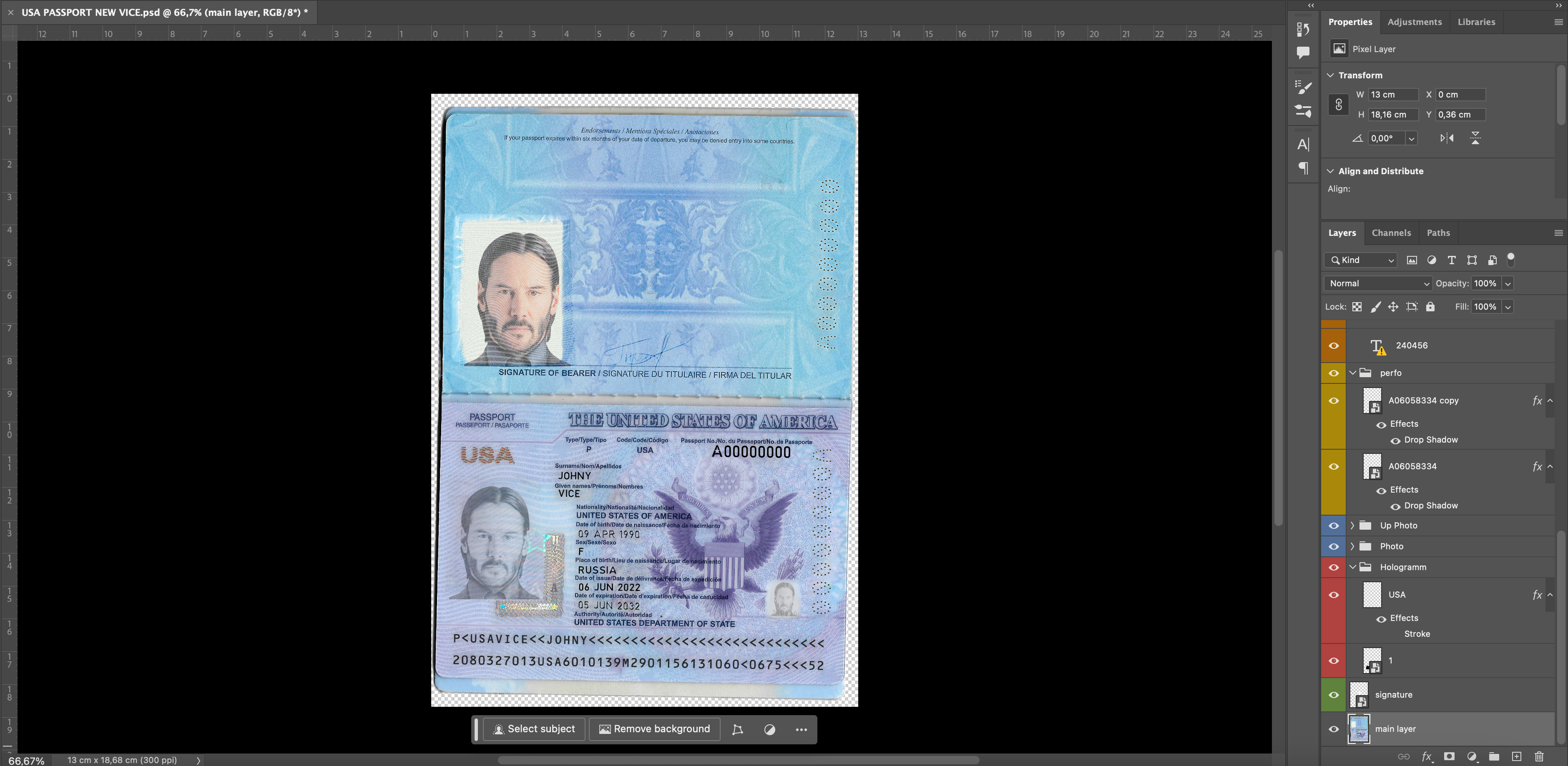 Layer-based design allows precise editing of each passport element